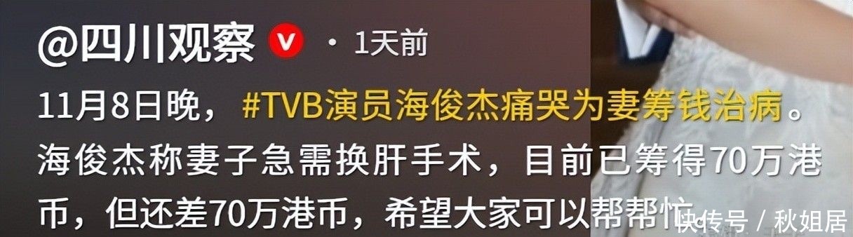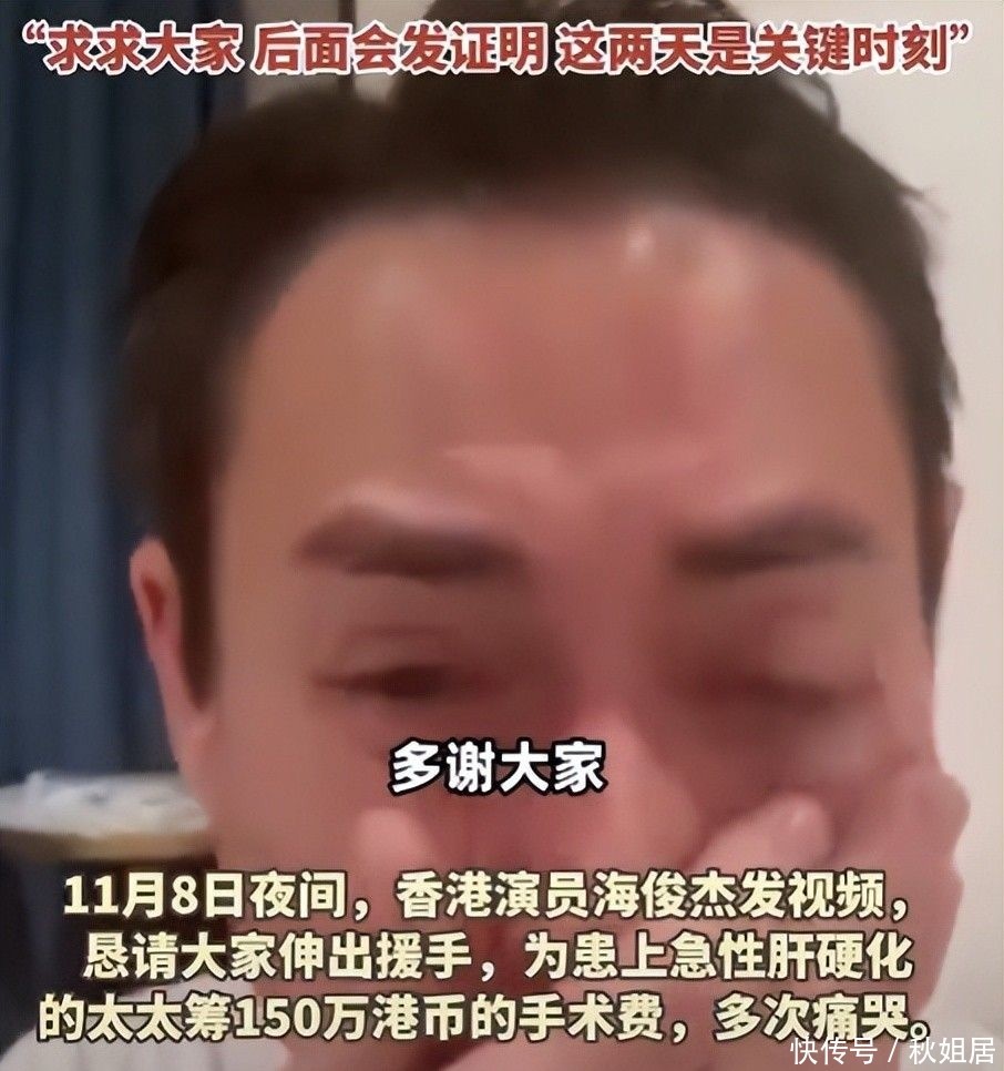 52岁的海俊杰面对镜头泣不成声,双眼红肿几乎睁不开,声音颤抖得无法连贯:“我太太得了急性肝硬化,医生说如果48小时内拿不出150万港币做肝脏移植,她就没救了!”